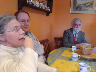 This morning was such a lovely morning that we decided to cycle to a farm shop where we were meeting friends Dianah and Terry for lunch. Although Suffolk scenery is generally thought to be flat, I can assure you that,from the saddle of a bicycle, it is not so. Perhaps, from the point of view of a Welshman or a Scot, it is fairly even; but from the point of view of a Norfolk fenman (i.e. your blogger), it is distinctly undulating, with quite steep bits. Still, it was a lovely morning for a ride through pleasant Suffolk scenery (see above). When we got to the farm shop at midday we found it was so crowded that Terry and Dianah could find nowhere to park, and as the restaurant was already full we left the cycles there, and went on with Terry and Dianah to another small restaurant about three miles further on where we found a table and all had ploughman's lunches (two cheddar, one brie, and one stilton, and no, I wasn't the stilton, I was one of the Cheddars - although the cheddars turned out to be part cheddar and part double Gloucester, and none the worse for it). Very pleasant lunch accompanied by a pot of tea for three and a coffee. After lunch we pottered round the craft shop and garden shop, where we ran into Craig, (who is coming to help and advise me with this machine tomorrow) then got back in the car, returned to the original (still very crowded) farm shop, and returned home by a slightly different route though the villages. Being called for supper, so will complete this blog later (D.V.)