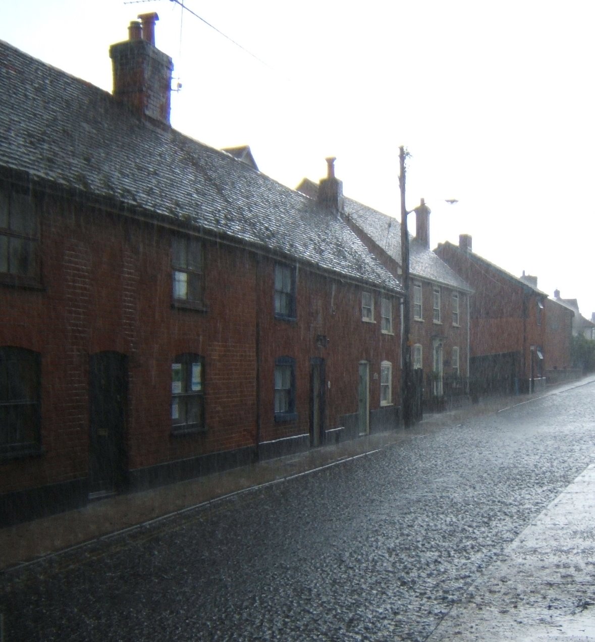 At 4.25 pm today we had a cloudburst, and thunderstorm, followed a hailstorm with thunder and lightning. In five minutes the street was ankle deep in rainwater (as per photie)- in early-mid August I'll trouble you!!!!!!! My late father once advised me never to trust English weather - or English weather forecasters; and how right he was.